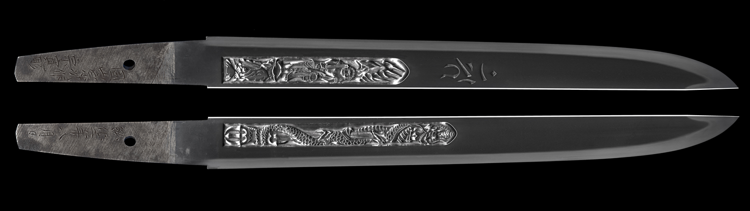 短刀 特別保存刀剣 固山宗次作 宗寛彫 弘化二年八月日 (附)変わり塗鞘短刀拵 縁 萩谷勝平 目貫 勝珉 鐺 所持者銘 小杉輔 尤 Tanto(Koyama-Munetsugu) 価格 どうぞお問合せください。 |